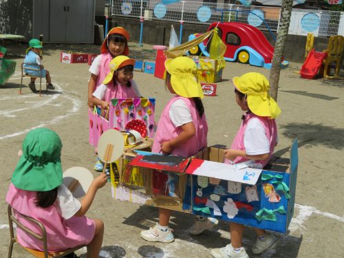 栄ヶ丘幼稚園 きぼうの森こども園 新着情報News ホーム > 新着情報 > 【栄ヶ丘幼稚園】のりものごっこ② 【栄ヶ丘幼稚園】のりものごっこ② 2020.06.06 年少さんからは、のりものチケットを渡してから乗るお約束をしています。 「電車に乗るときも切符買うよね!」 と物知りな子ども達。 どれから乗ろうかなぁ~と目をキラキラさせてのりものを選んでいました☆ スピードの出し過ぎには注意して、友達との園庭ドライブを楽しんだようです!(^^)! 一覧へ戻る アーカイブ 20252024202320222021202020192018201720162015201420132012