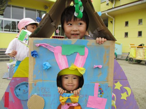 栄ヶ丘幼稚園 きぼうの森こども園 新着情報News ホーム > 新着情報 > 【栄ヶ丘幼稚園】のりものごっこ(幼稚園部) 【栄ヶ丘幼稚園】のりものごっこ(幼稚園部) 2023.06.08 「色々な車がある!」「どれに乗ろうかな~」と沢山の乗り物を目の前にわくわくがとまらない子ども達。消防車にヘリコプター、潜水艦に宇宙に飛び立てるロケット等、お友達と協力して作った素敵な車に乗って、いざ出発です!園庭いっぱいに広がった道路を安全運転で進み、ガソリンスタンドに立ち寄ったりしながらドライブを楽しみました。 一覧へ戻る アーカイブ 20252024202320222021202020192018201720162015201420132012