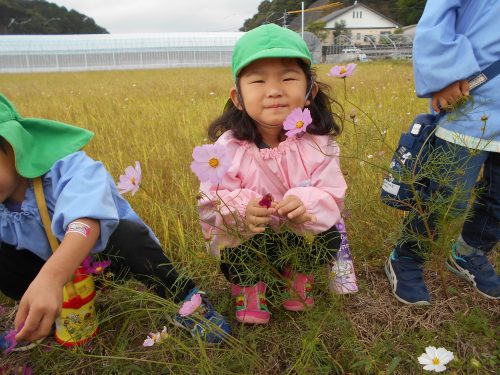 「ちぎったらお花さんがかわいそうだね」と話し合う子どもたちに、コスモスのお花も嬉しそうに見送ってくれました。