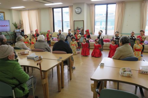 栄ヶ丘幼稚園 きぼうの森こども園 新着情報News ホーム > 新着情報 > 【栄ヶ丘幼稚園】高齢者施設訪問(田中病院) 【栄ヶ丘幼稚園】高齢者施設訪問(田中病院) 2019.02.16 年長さんが田中病院へ訪問に行きました。 発表会で踊った踊りを披露すると 大きな拍手がわき、喜んでくれました。 肩たたきをしたり、握手をしながらお話をしたりして 子ども達も楽しかったようです! 子ども達の愛らしい姿を 優しい目で見てくれるおじいちゃん、おばあちゃん❤ これからも元気でいてくださいね♬ 一覧へ戻る アーカイブ 20252024202320222021202020192018201720162015201420132012