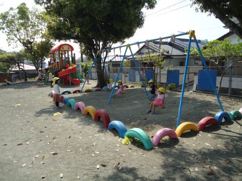 園庭に出ると、クラス関係なく仲良く遊べるお友だち。